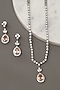 Featuring a white finish necklace studded with zircons and champagne stones, set in copper. It is paired with a matching pair of earrings. This necklace set is a testament to refined taste and timeless style, ideal for festive occasions or wedding ceremonies.