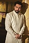 Featuring an ivory indo-western jacket in premium magna base with tonal hand embroidery. It is paired with pants. Style with kolhapuri sandals for a festive, cultural occasion or wedding ceremony, exuding traditional charm and elegance.