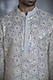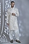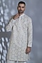 Featuring an ivory kurta in silk base with sequins embroidery. It is paired with pants. Perfect attire for festive occasions or wedding ceremonies.