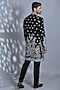 Featuring a jet black kurta in japanese suiting fabric base with floral embroidery. It is paired with pants. Perfect attire for festive occasions or wedding ceremonies.