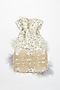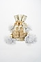 Featuring a silver and golden potli in faux silk base with hand embroidery, tassels, and organza pom poms. It has a faux silk underlining.