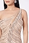 Featuring a nude pink gown in italian tulle base with glass beads and sequins hand embroidery.