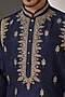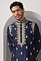 Featuring a royal blue kurta in raw silk base with hand embroidery. It is paired with pants. Perfect wear for festive occasions.