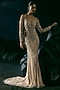 Featuring a beige gown in italian tulle and silk lycra base with beadwork and hand embroidery. Accentuate it with diamond jewellery and heels for a high-fashion gala, red carpet, cocktail or award night.