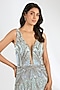 Featuring a blue flared gown in italian tulle base with a deep plunging neckline, beads and crystal embroidery. Accentuate it with statement earrings and stilettos, perfect for a red carpet event, reception or formal evening gala.
