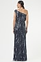 Featuring a dark blue asymmetrical gown in georgette base with beads and sequins hand embroidery.