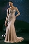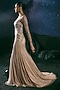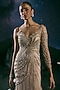 Featuring a dull cream gown in italian tulle and silk lycra base with swarovski and glass crystal hand embroidery, including a trail. Accentuate it with diamond jewellery and heels for a high-fashion gala, red carpet, cocktail or award night.