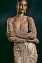 Featuring an ivory gown in italian tulle and silk lycra base with swarovski and glass crystal hand embroidery, including a long trail. Accentuate it with diamond jewellery and heels for a high-fashion gala, red carpet, cocktail or award night.