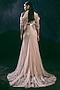 Featuring a pink flared-back gown in italian tulle and silk lycra base with draped sleeves, embellishments, swarovski and glass crystals hand embroidery. Accentuate it with diamond jewellery and heels for a high-fashion gala, red carpet, cocktail or award night.