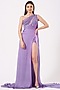 Featuring a purple one-shoulder drape gown in satin base with glass beads, crystals, sequins and bugle beaded hand embroidery.