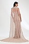 Featuring a rose pink gown in italian tulle base with crystal and beads hand embroidery. It is paired with a shoulder cape. Accentuate it with statement earrings and stilettos, perfect for a red carpet event, reception or formal evening gala.
