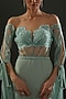 Featuring a sea green corset gown in italian tulle base with fine beads, sequins and crystal hand embroidery. Accentuate with statement earrings and heels for an evening wear or cocktail party.