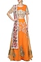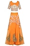 Orange Pearl And Gota Thread Work Lehenga With Matching Floral Pattern Embroidered Blouse Set