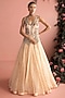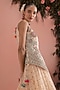 Bhumika Sharma presents a beige jacket in organza base with floral embroidery with a skirt. Accentuate it with zircon jewellery and metallic heels for a stylish ensemble, ideal for weddings, engagement or sangeet celebrations.
