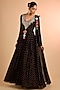 Featuring a a black anarkali in georgette base with floral embroidery with an attached dupatta. Accentuate it with kundan polki earrings, a clutch and metallic heels for a stylish ensemble, ideal for festive occasion, cultural celebrations or sangeet ceremonies.