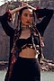 Featuring a black long jacket in georgette and shantoon base with handmade tassels. It is paired with matching shorts and a bustier.