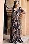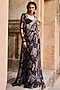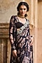 Bhumika Sharma features a black saree in lycra base with floral print. It is paired with an embroidered bustier and a jacket. Style this designer set with chandbalis, soft waves, and strappy heels for a graceful ensemble. perfect for sangeet nights, receptions, and wedding celebrations.