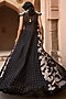 Bhumika Sharma features a black skirt in organza base with floral print. It is paired with an embroidered bustier and a jacket having bold ambi embroidery. Style this designer set with chandbalis, soft waves, and strappy heels for a graceful ensemble. perfect for sangeet nights, receptions, and wedding celebrations.