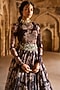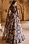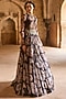 Bhumika Sharma features a black anarkali in organza and lycra base with floral print and an attached dupatta. Style this designer anarkali with chandbalis, soft waves, and strappy heels for a graceful ensemble. perfect for sangeet nights, receptions, and wedding celebrations.
