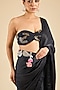 Featuring a black saree in satin base. It is paired with a blouse. Accentuate it with zircon jewellery and embellished heels for a sangeet or cocktail ceremony.
