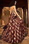 Bhumika Sharma features a brown anarkali in net and organza base with embroidery. Style this designer anarkali with chandbalis, soft waves, and strappy heels for a graceful ensemble. perfect for sangeet nights, receptions, and wedding celebrations.