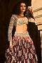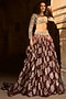 Bhumika Sharma features a brown blouse in net and organza base with embroidery. It is paired with a lehenga and a dupatta. Style this designer set with chandbalis, soft waves, and strappy heels for a graceful ensemble. perfect for sangeet nights, receptions, and wedding celebrations.