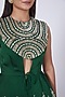 Featuring an emerald green peplum top in satin crepe base with pearl, sequins, and mirror embroidery. It is paired with matching dhoti pants.