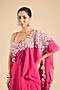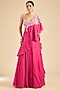 Featuring a fuchsia draped saree in georgette base. It is paired with a blouse. Accentuate it with zircon jewellery and embellished heels for a sangeet or cocktail ceremony.
