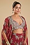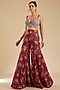Featuring a fuchsia cape in georgette and net base with print. It is paired with an embroidered blouse and flared pants. Accentuate it with statement earrings, embellished juttis and a sleek clutch for an elegant look, perfect for festive celebrations, sangeet or cocktail ceremonies.