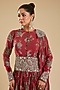 Featuring a fuchsia anarkali in georgette base with print with an attached dupatta. It is paired with an embroidered belt. Accentuate it with statement earrings, embellished juttis and a sleek clutch for an elegant look, perfect for festive celebrations, sangeet or cocktail ceremonies.