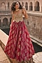 Bhumika Sharma features a fuchsia and red anarkali in organza base with embroidery and tassels detailing at the back. Style this designer anarkali with chandbalis, soft waves, and strappy heels for a graceful ensemble. perfect for sangeet nights, receptions, and wedding celebrations.