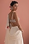 Bhumika Sharma presents an ivory pre-draped saree in georgette base. It is paired with a tassles embroidered blouse. Accentuate it with zircon jewellery and metallic heels for a stylish ensemble, ideal for weddings, engagement or sangeet celebrations.