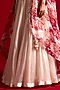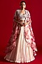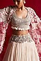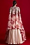 Featuring an ivory lehenga in organza and net base. It is paired with a cape having blossom print and paisley embroidery, including a bustier. Style it with statement jewellery and heels for a sangeet or wedding ceremony.