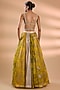 Featuring a multi-colored skirt in organza and net base. It is paired with a bustier. Accentuate it with statement earrings and heels for a haldi, wedding or engagement ceremony.