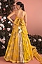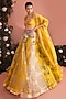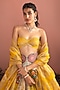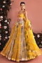 Bhumika Sharma presents a mustard lehenga in organza base with print. It is paired with an embroidered bustier and a dupatta. Accentuate it with zircon jewellery and metallic heels for a stylish ensemble, ideal for weddings, engagement or sangeet celebrations.