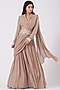 Featuring a nude pre-stitched pant saree in georgette base with nukta print. It is paired with a matching blouse and a hand-embroidered belt. Perfect wear for festive occasions or wedding ceremonies.