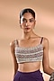 Featuring a purple saree in georgette base. It is paired with a blouse. Accentuate it with statement jewellery and heels for a sangeet ceremony.