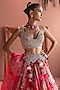Bhumika Sharma presents a fuchsia lehenga in organza base with embroidery. It is paired with an embroidered blouse and a dupatta. Accentuate it with zircon jewellery and metallic heels for a stylish ensemble, ideal for weddings, engagement or sangeet celebrations.