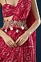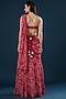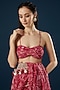 Featuring a red pre-stitched saree in georgette base with geometric print. It is paired with a matching pleated bustier and a hand embroidered belt. Perfect wear for festive occasions or wedding ceremonies.