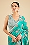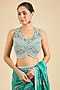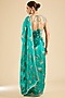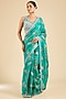 Featuring a teal saree in georgette and net base with print. It is paired with an embroidered blouse. Accentuate it with zircon jewellery and embellished heels for a wedding or mehendi ceremony.