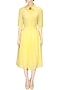 This set features a lemon yellow crop top in georgette base. It has a front button placket detailing. It comes along with matching lemon yellow pleated georgette skirt.