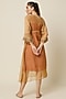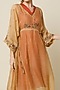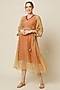 Featuring a beige kaftan in organic cotton silk base with floral motifs in sequins, cutdana, kasab, resham, beads and zardosi hand embroidery. It is paired with a contrasting orange dress.