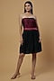 Featuring a black strapless dress in organic silk base with floral applique work.