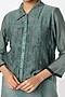 Featuring a dull teal shirt dress in organic cotton silk base with thread hand-embroidered floral motifs.