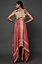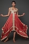 Featuring an off-white and peach asymmetrical dress in organic silk base with back detailing, thread, resham, and floral embroidery.