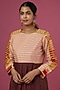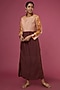 Featuring a peach and maroon color blocked dress in organic textured silk base with sequins and thread hand embroidery.