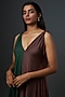 Pine Green & Wooden Brown Color Blocked Dress