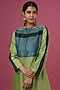 Featuring a pistachio green maxi dress in organic silk base with beads hand embroidery.