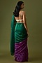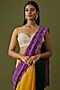 Featuring a purple and yellow color-blocked saree in organic cotton silk base with abstract thread hand embroidery. It is paired with a matching unstitched blouse.
