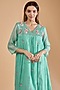 Featuring a teal gathered dress in organic silk base with sequins, beads, resham, zardosi and floral motifs embroidery.